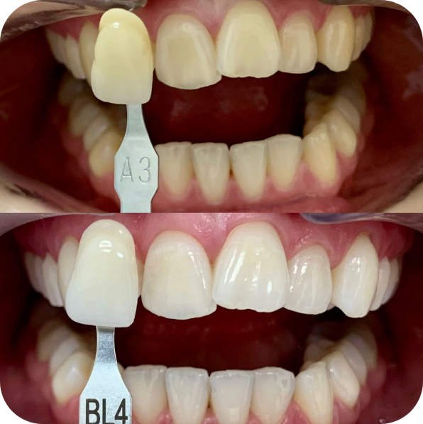 Bělení zesvětluje přirozené zuby, ale nezmění barvu korunek, fazet ani výplní. Na tuto skutečnost vás vždy předem upozorníme a navrhneme nejlepší estetické řešení.